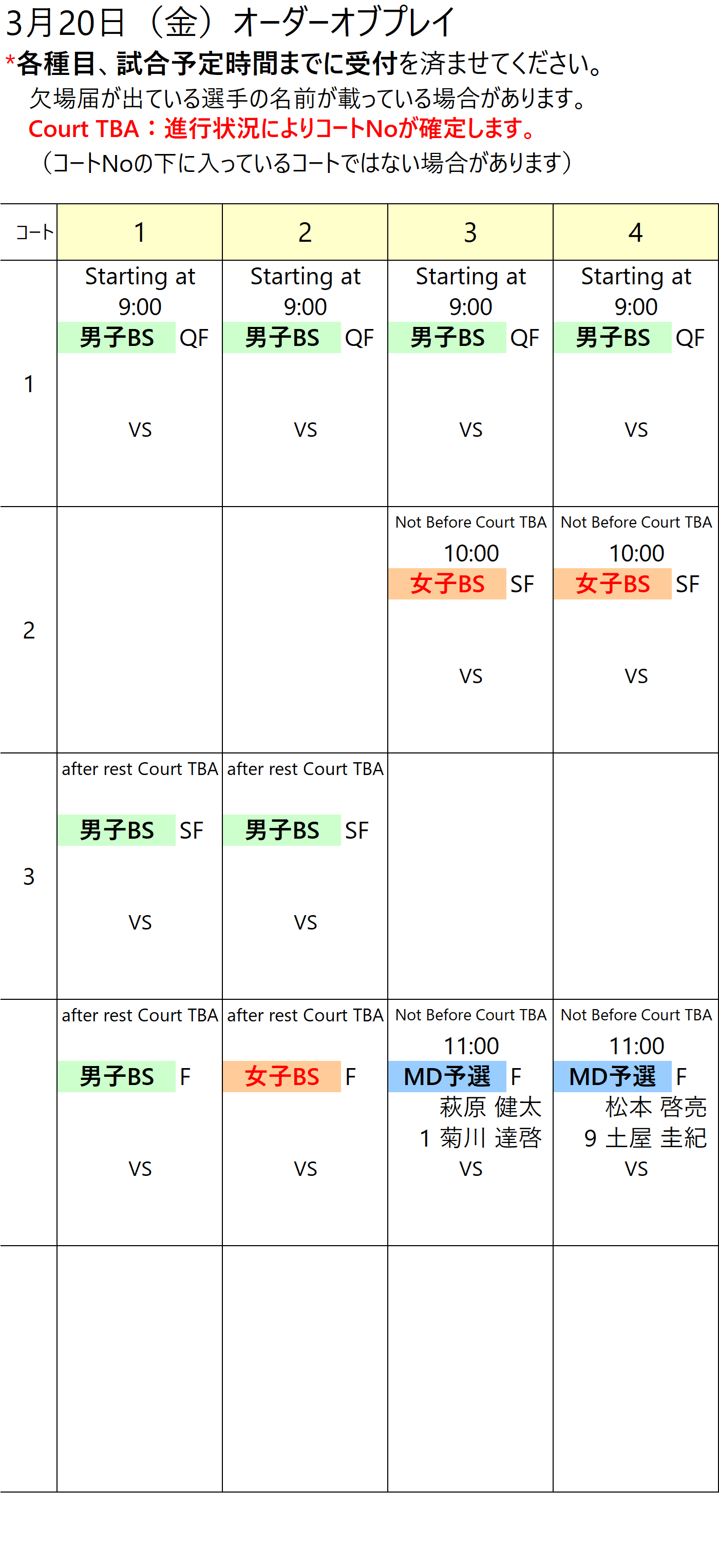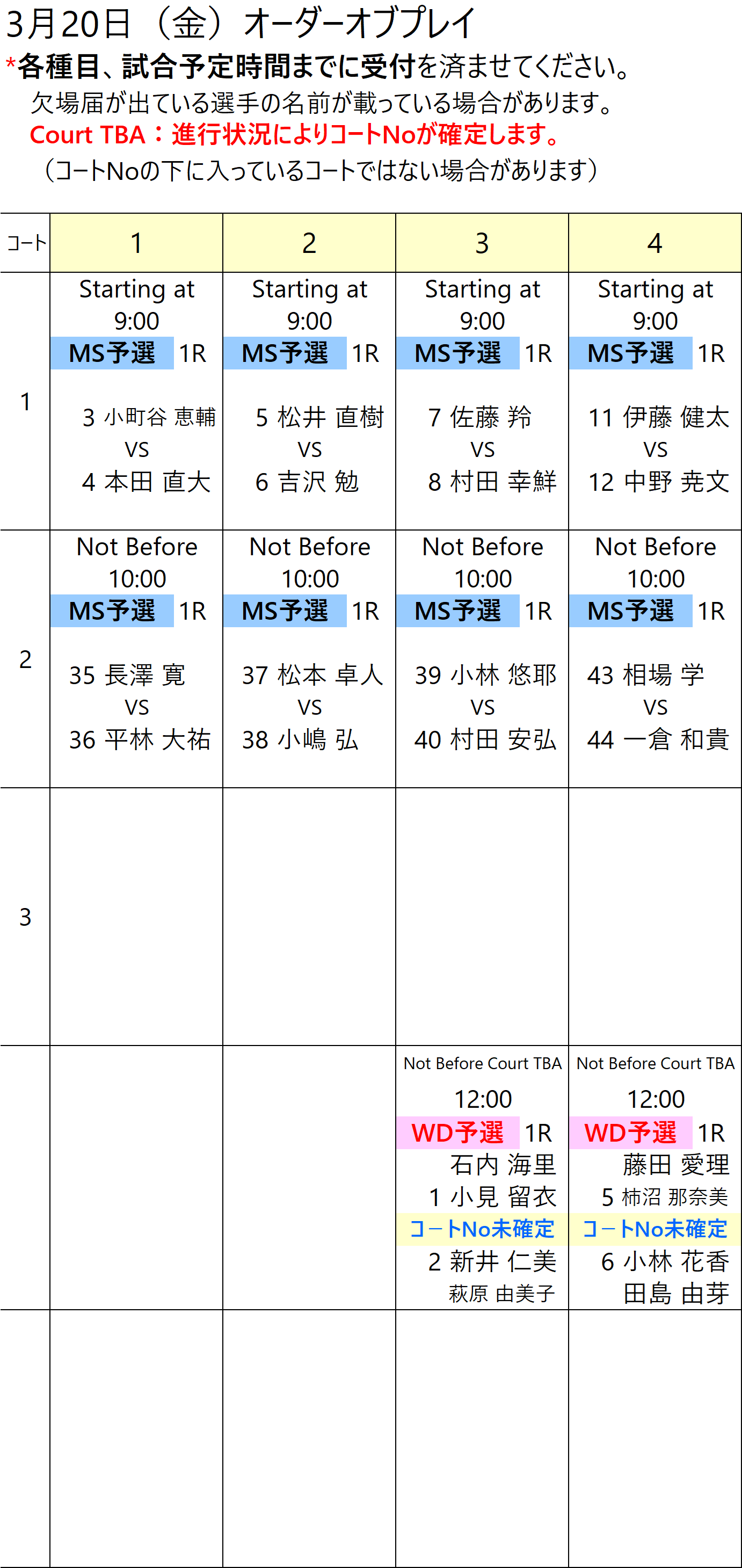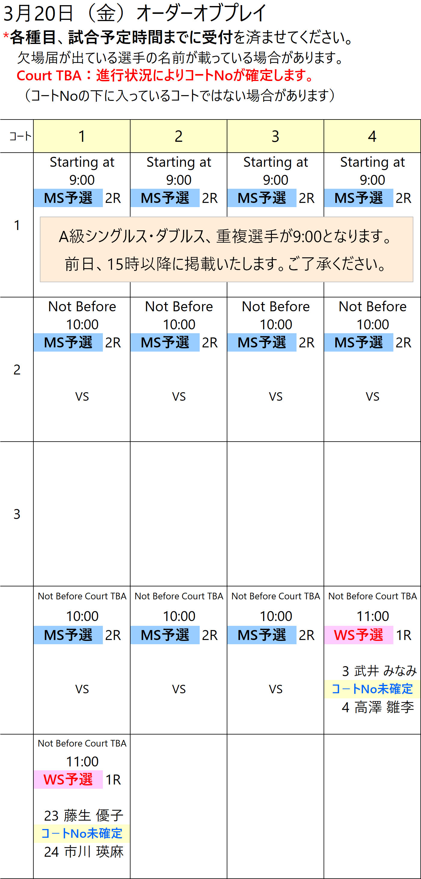 1〜4コート